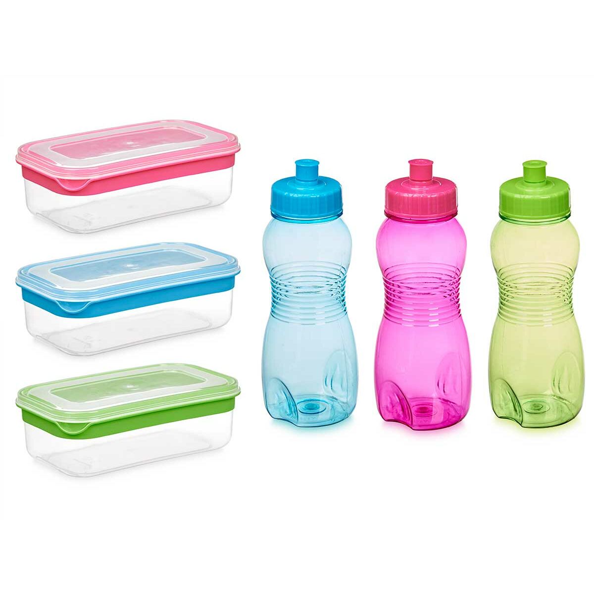 The Leknes lunchbox and bottle set is a practical and versatile kit designed to carry food and drinks comfortably and securely. This pack combines a lunchbox and a water bottle, made from durable and lightweight materials: the lunchbox is made of polyethylene, ideal for keeping food fresh and easy to clean, while the bottle is made of polypropylene, known for its strength and ability to hold liquids without leaks or odors. Regarding dimensions, it offers several size options to suit different needs: the lunchbox measures approximately 19.5 x 11.5 x 7 cm and another variant of 18 x 21 x 6.5 cm, both spacious yet compact for easy transport; meanwhile, the bottles come in formats of about 7.5 x 7.5 x 20.5 cm and 18 x 7.5 x 20.5 cm, ergonomic and easy to handle. This set is available in a variety of assorted colors that add a touch of personalization and style, complementing its functionality with an appealing look. Ideal for users seeking a practical solution to carry food and drinks to work, school, or outdoor activities, this Leknes set combines size, durability, and materials suitable for daily use, facilitating storage and transport without risk of spills or damage. Overall, the Leknes set represents a balanced and efficient option for those who value convenience and organization in their eating habits outside the home.